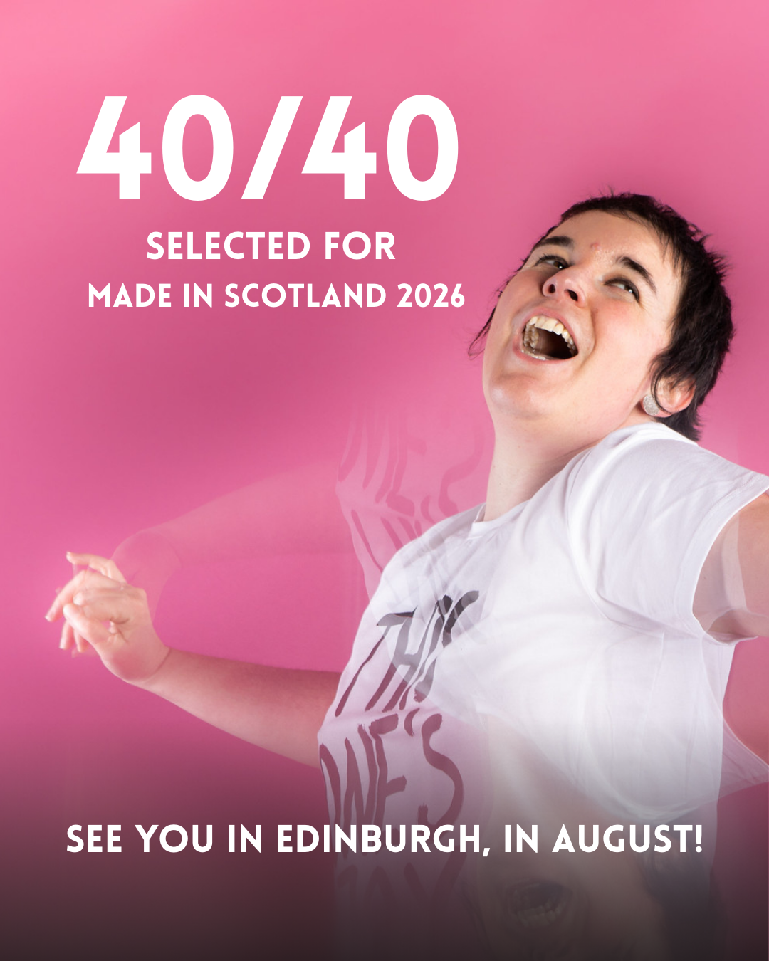 In August 2026, our critically acclaimed 40/40 is playing at Edinburgh Fringe Festival, part of the curated and prestigious showcase Made in Scotland, for all the info and tickets